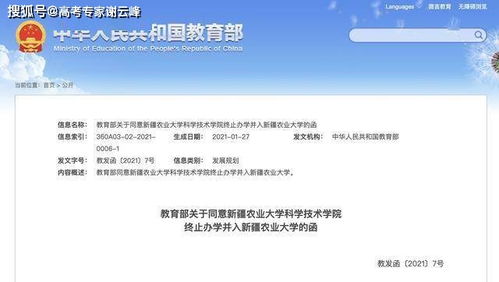 2020年10月25日,新疆维吾尔自治区教育厅发布公告称,新疆农业大学科学技术学院终止办学,原学校并入新疆农业大学。
