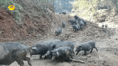 近日,湖南安化。一藏香猪养殖基地,每当广播响起《南泥湾》,成千上万的猪成群结队地从山林奔向养殖场。