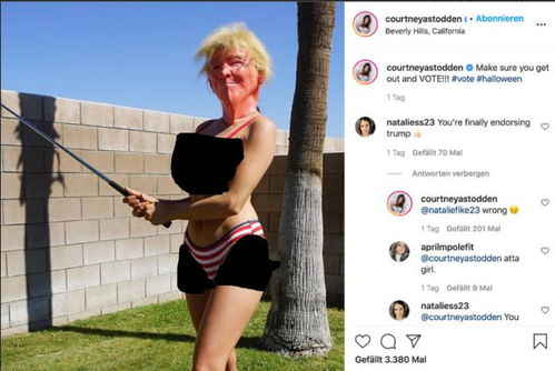 (原标题:美国女模特穿比基尼“特朗普面具”、持高尔夫球杆,呼吁粉丝投票)