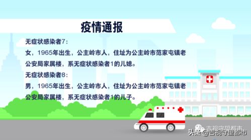 无症状感染者7:女,1965年出生,公主岭市人,住址为公主岭市范家屯镇老公安局家属楼,是无症状感染者1的媳妇。1月14日,核酸检测呈阳性,1月15日由临床专家组诊断为无症状感染者。