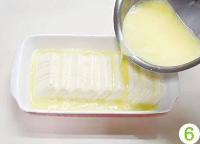 第六步:在放凉的蛋皮上抹上少许鸡蛋液,再放上调好的肉馅儿,并整发展方形。